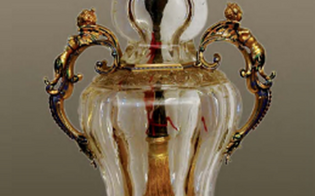 Longinuse oda mäekristallist vaasis Vatikanis. Autor/allikas: Schulze-Dörrlammi artikkel „Heilige Nägel und heilige Lanzen“ („Pühad naelad ja pühad odad“)